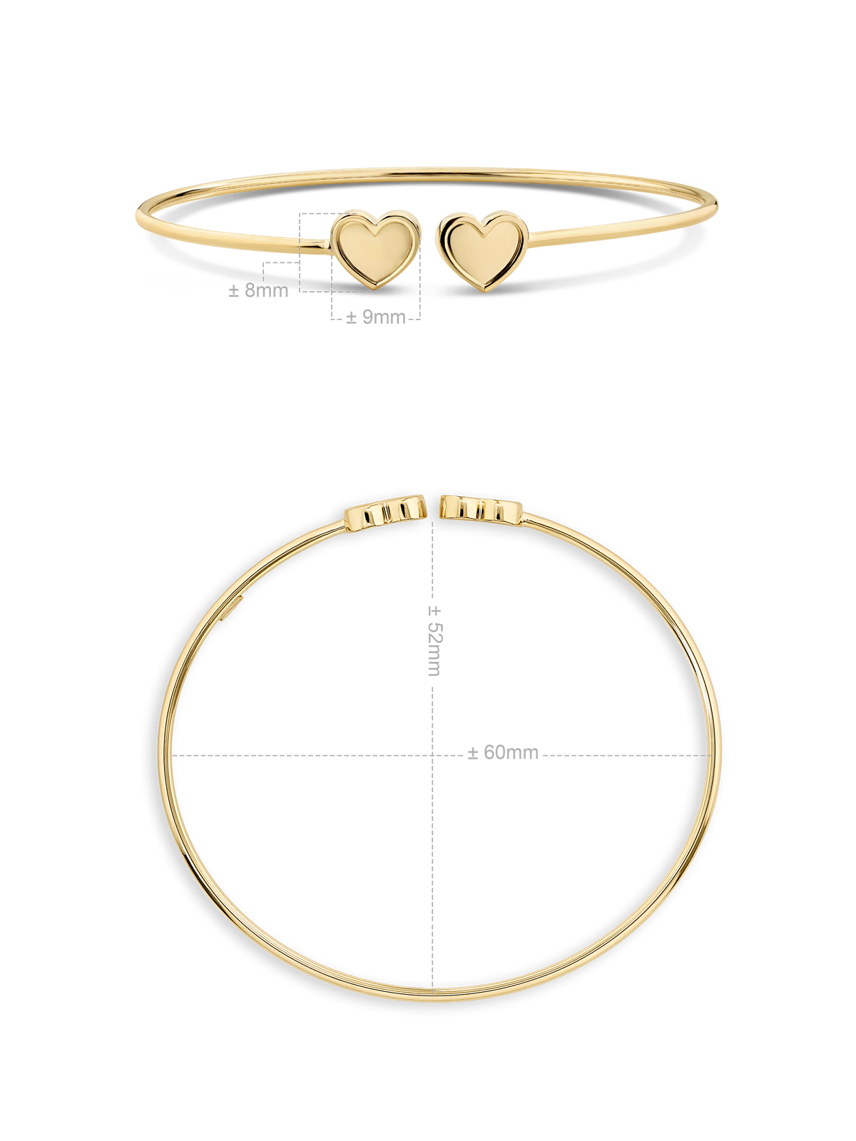 Devata Double Sweet Heart Bangle Bracelet in 14K Gold