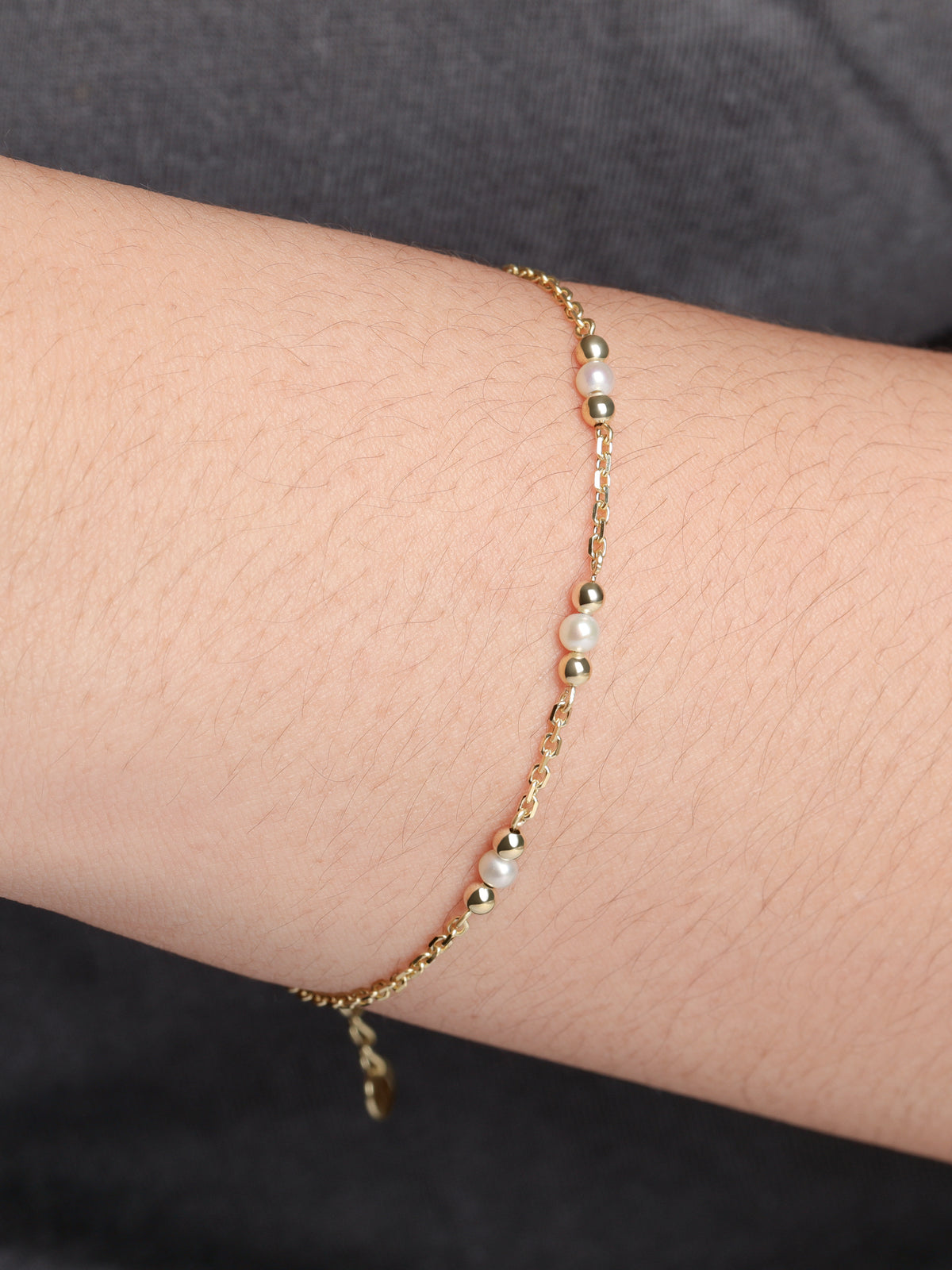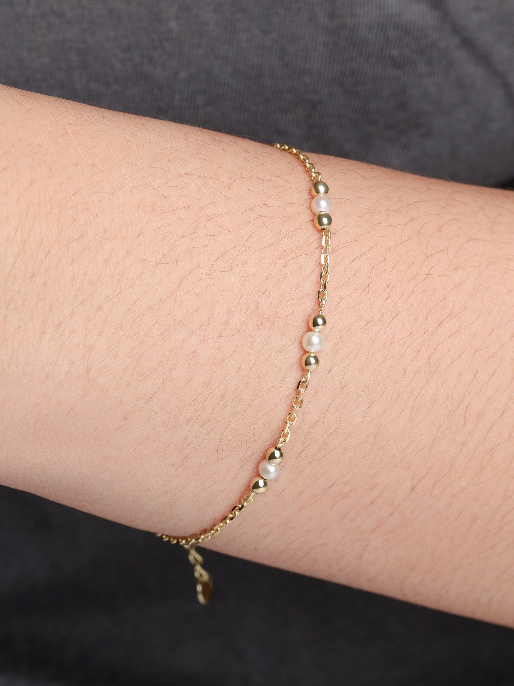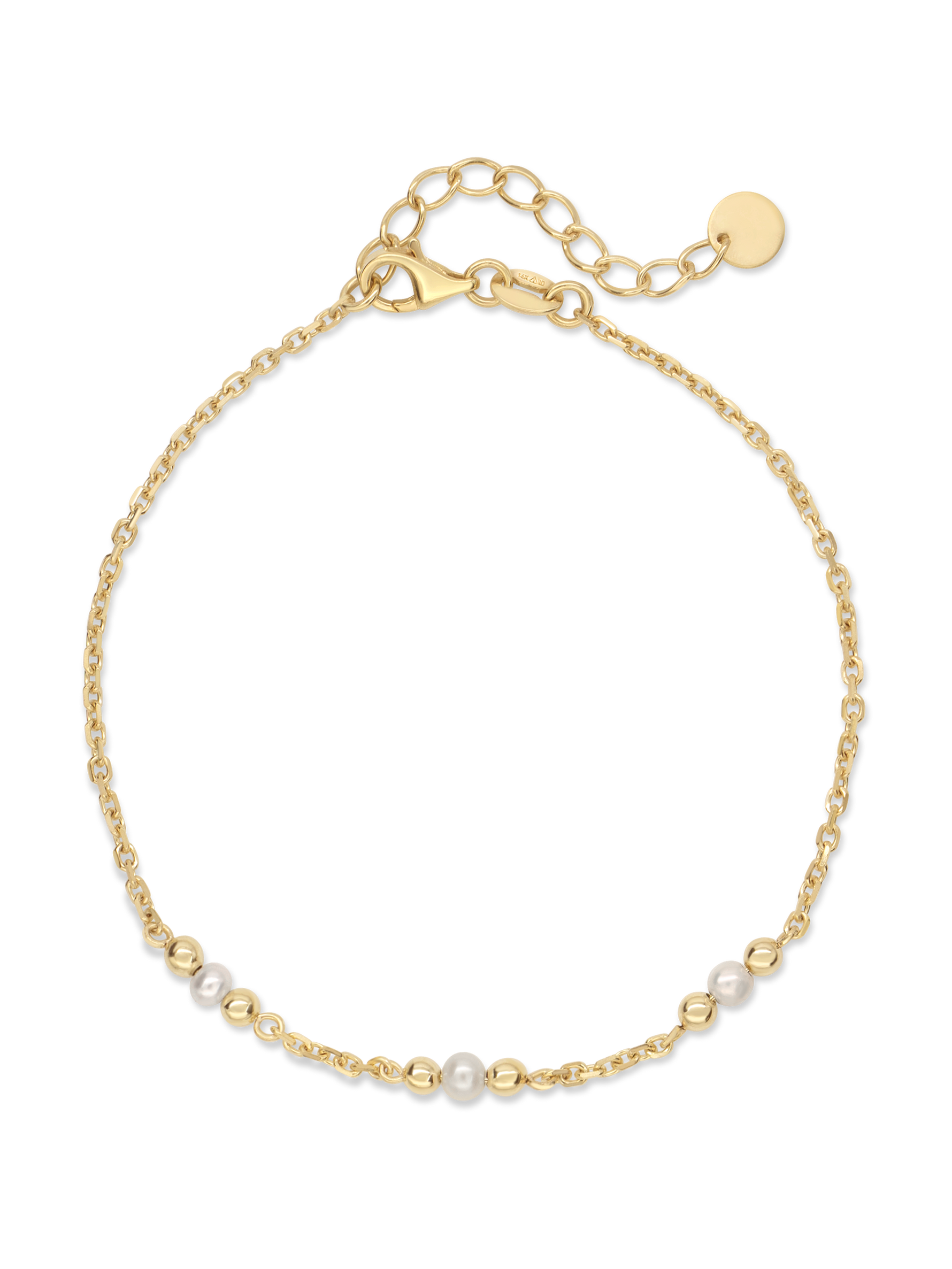 Freshwater Pearl Chain Bracelet - 14K Solid Gold / 7.5"