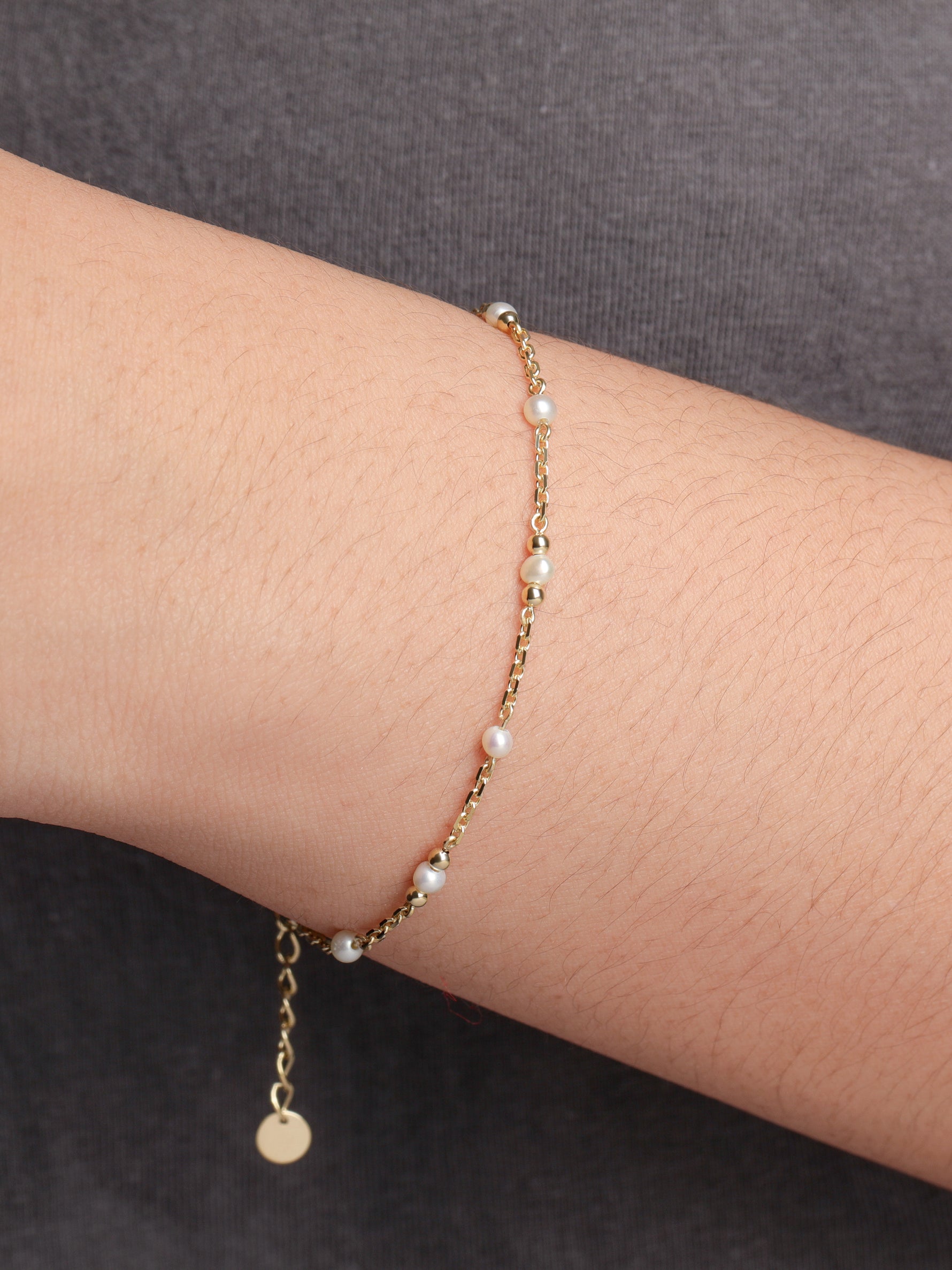 Freshwater Pearl Chain Bracelet - 14K Solid Gold / 7.5"