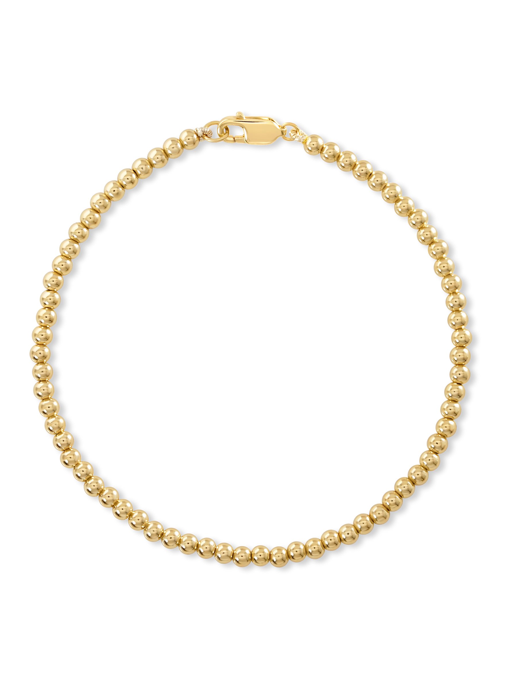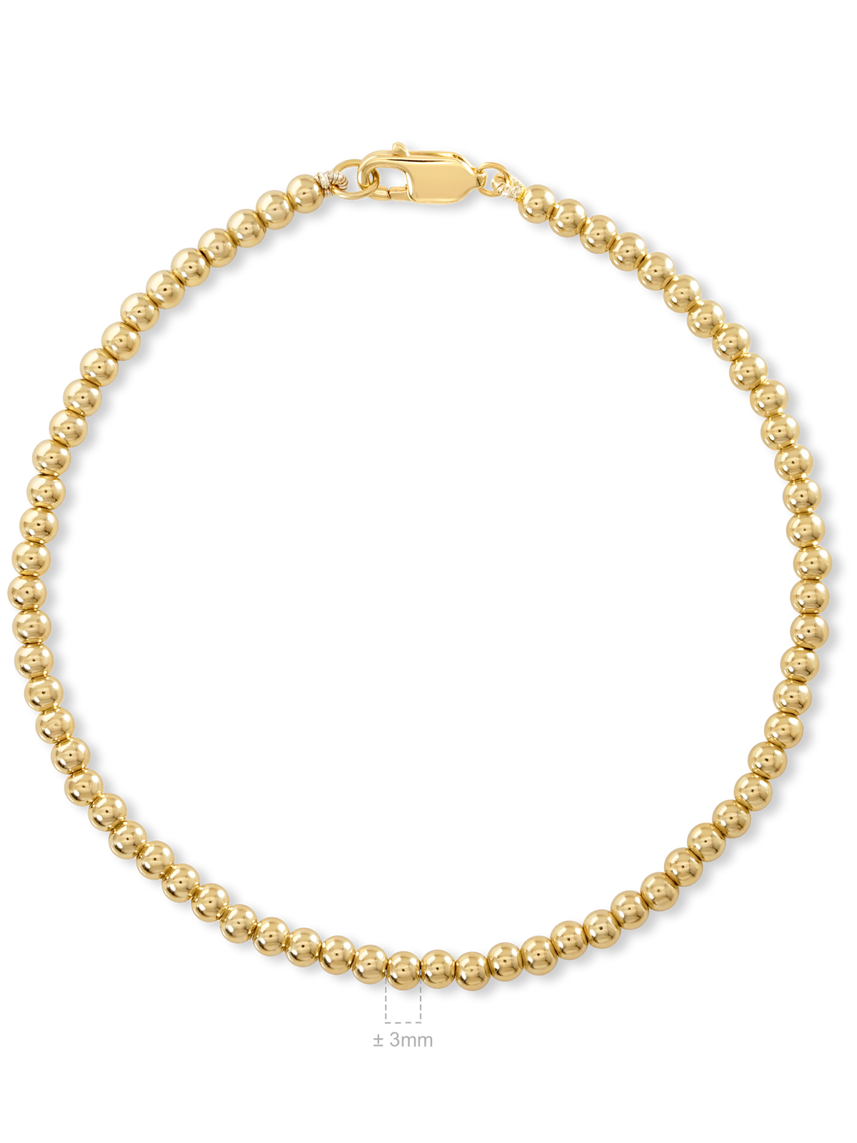 3mm Beaded Ball Bracelet - Gold Plated / XS/6.5"