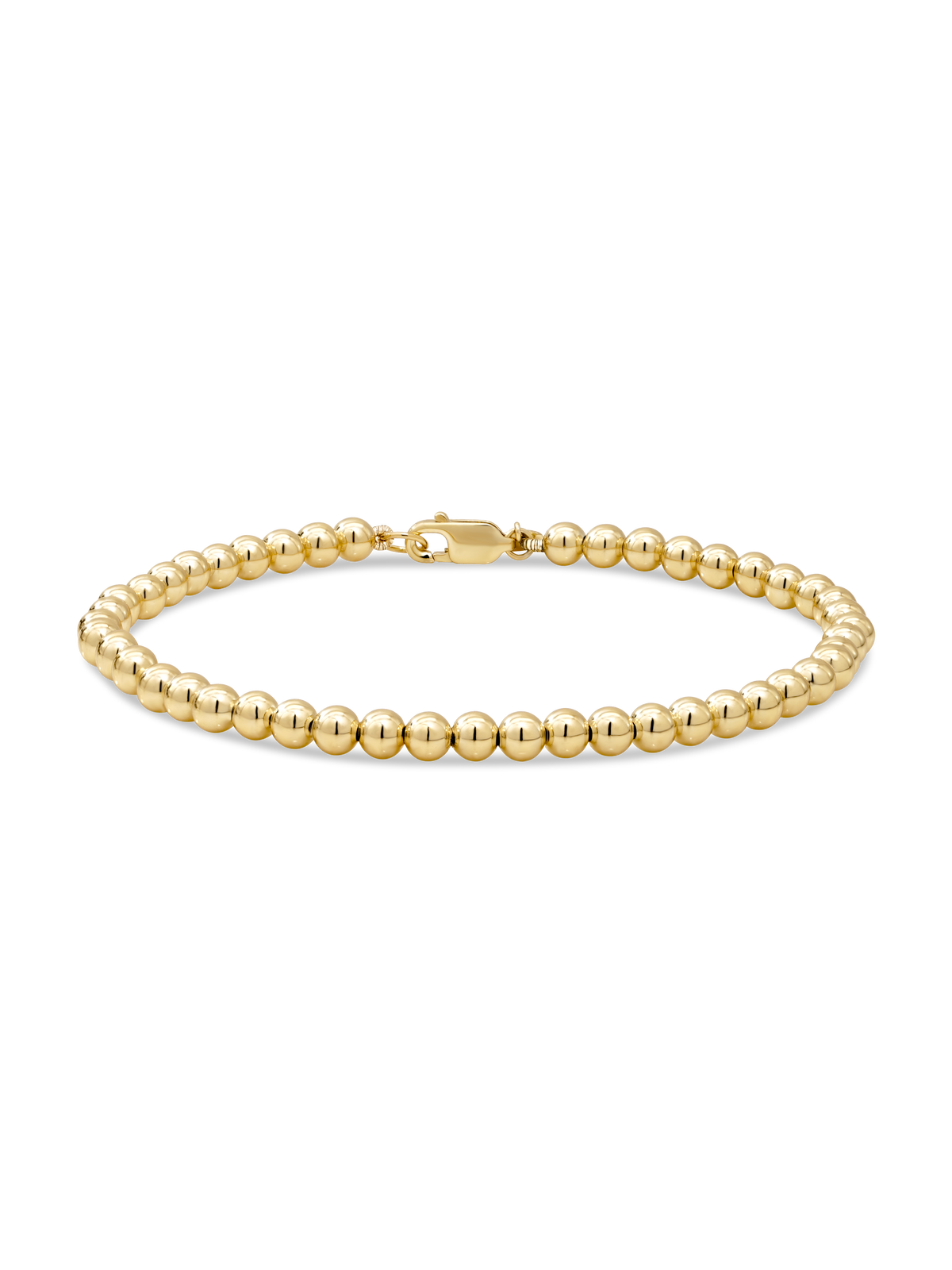 4mm Beaded Ball Bracelet - Gold Plated / S|7.0"