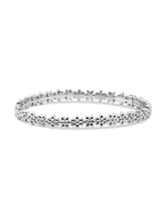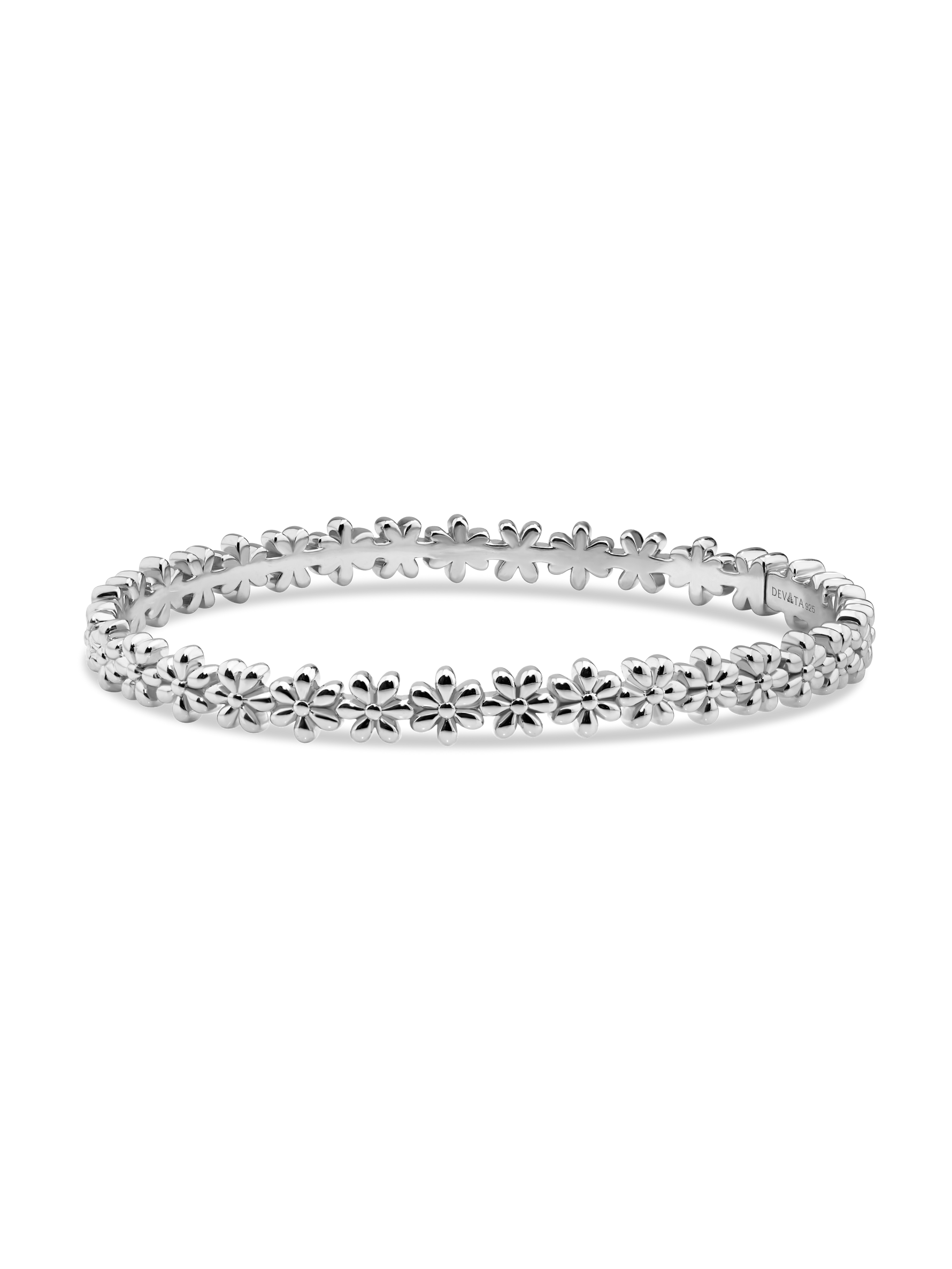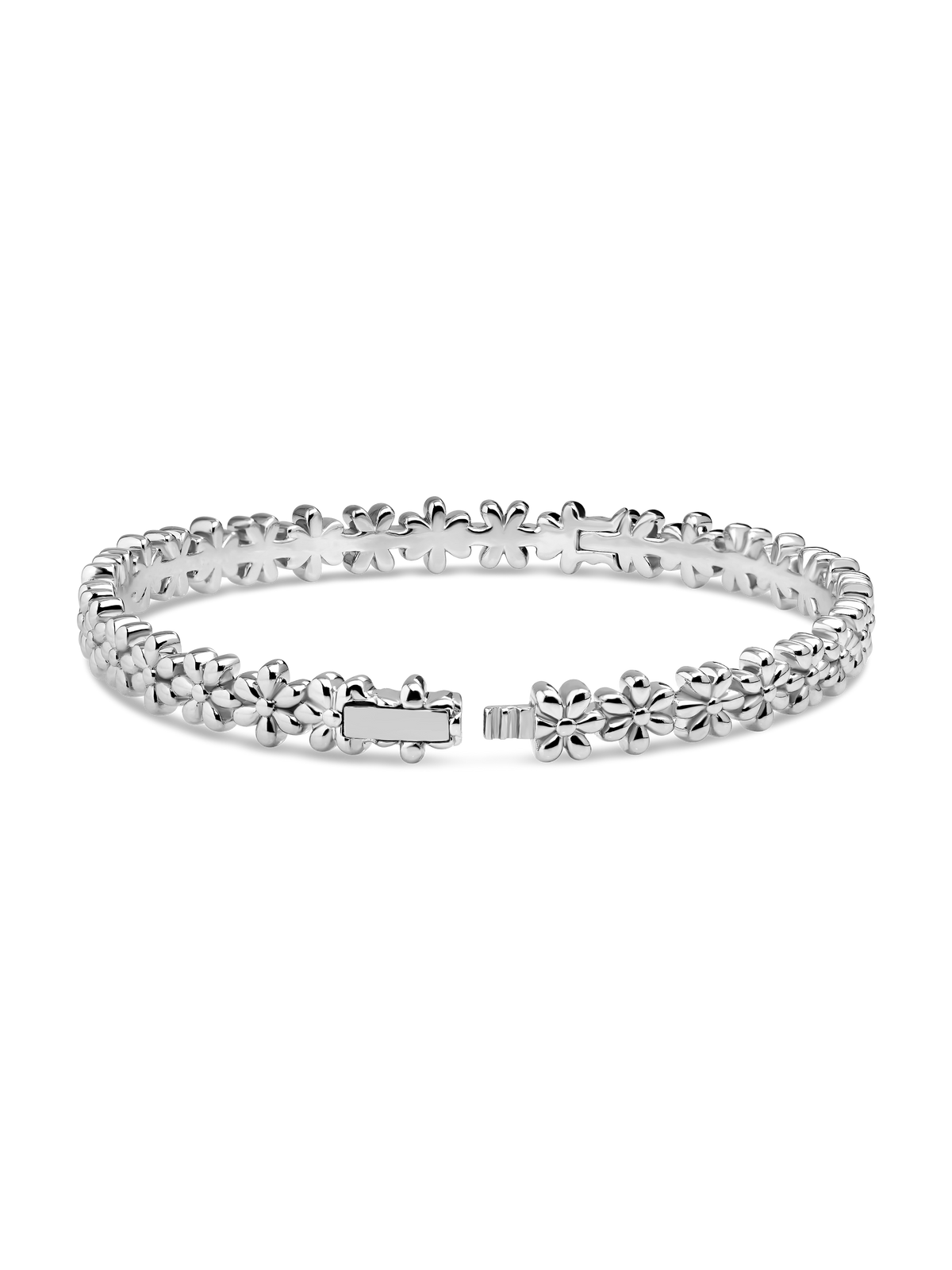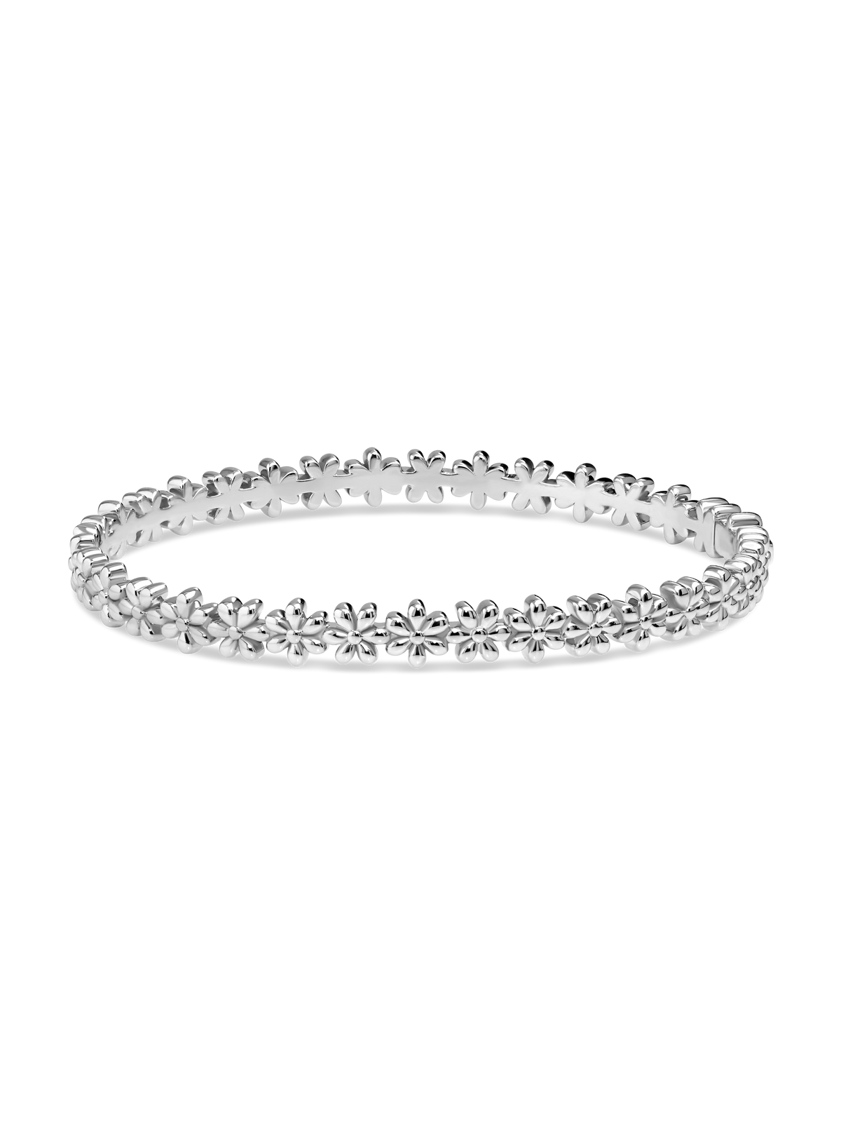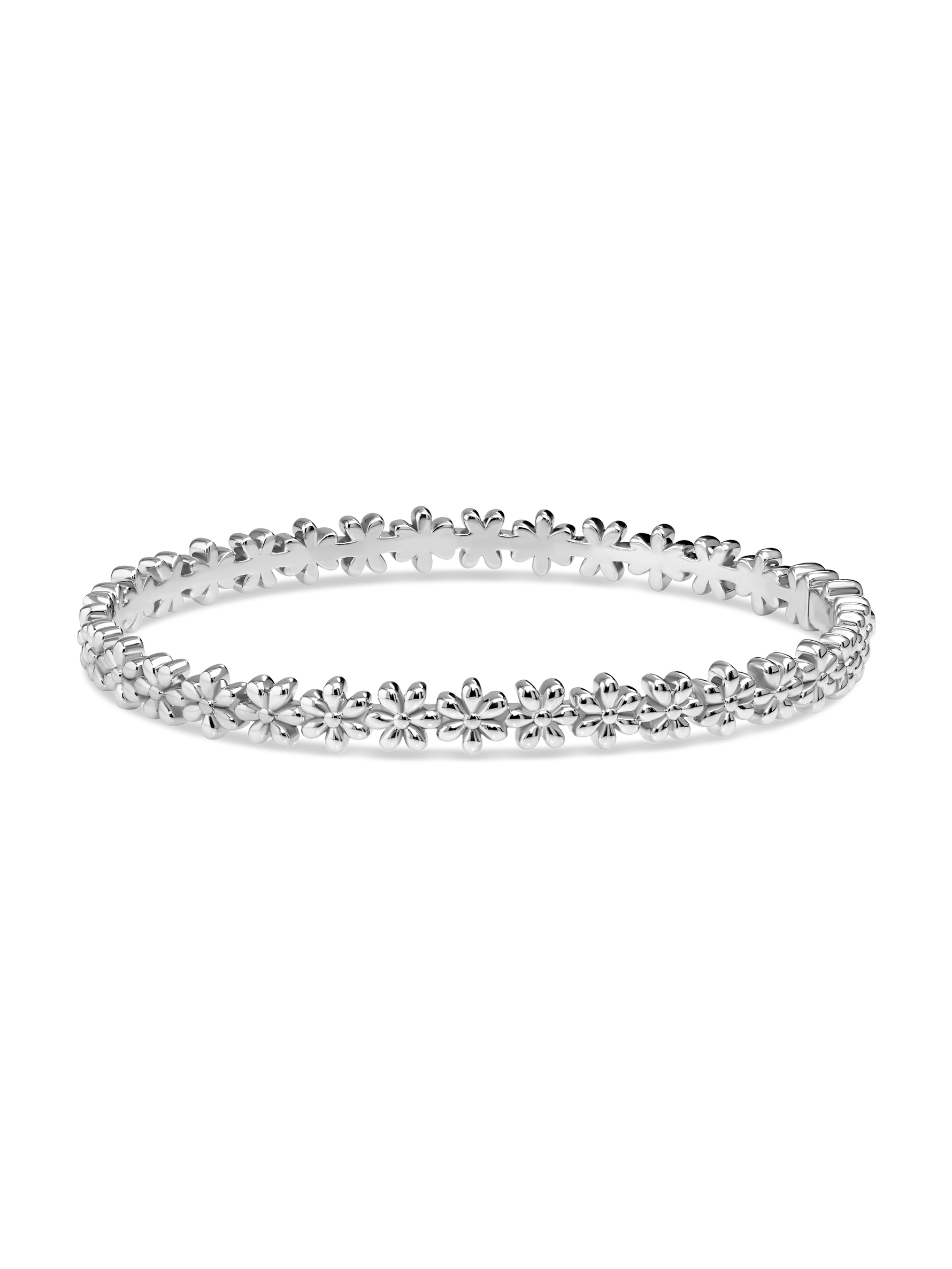 Daisy Flower Bangle Bracelet - Sterling Silver / M