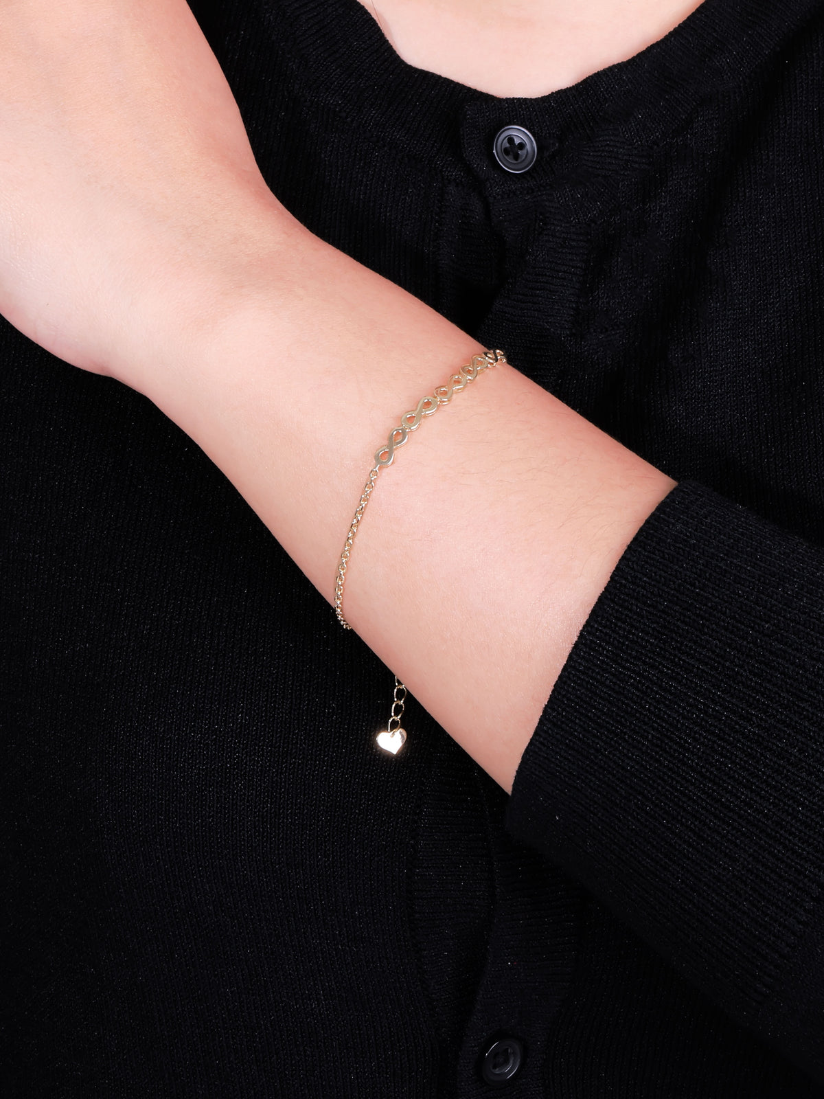 DEVATA infinty chain bracelet crafted in solid 14K yellow gold.