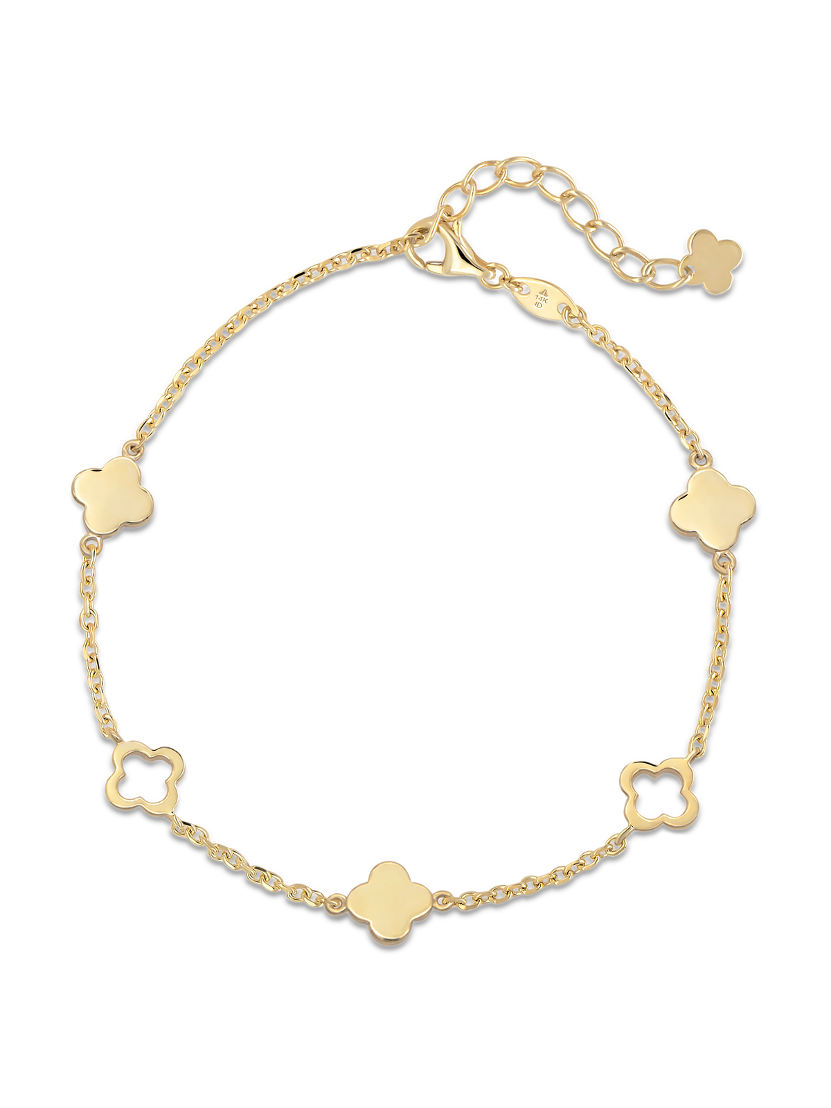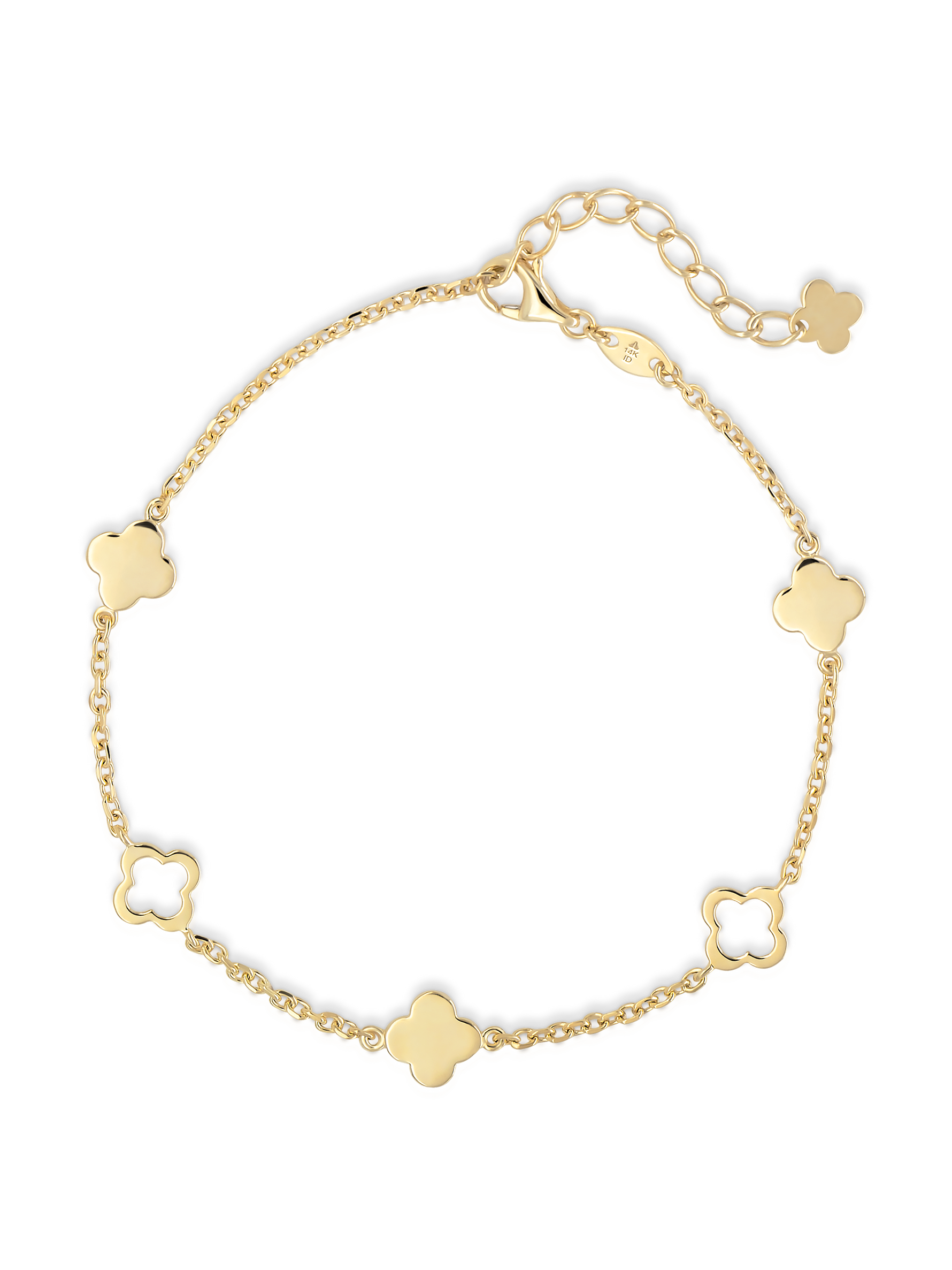 DEVATA clover chain bracelet with 5 clover charms crafted in solid 14K yellow gold.