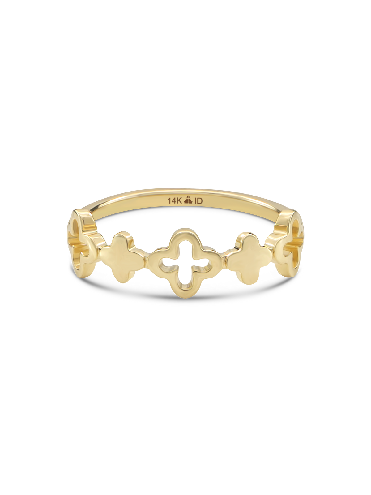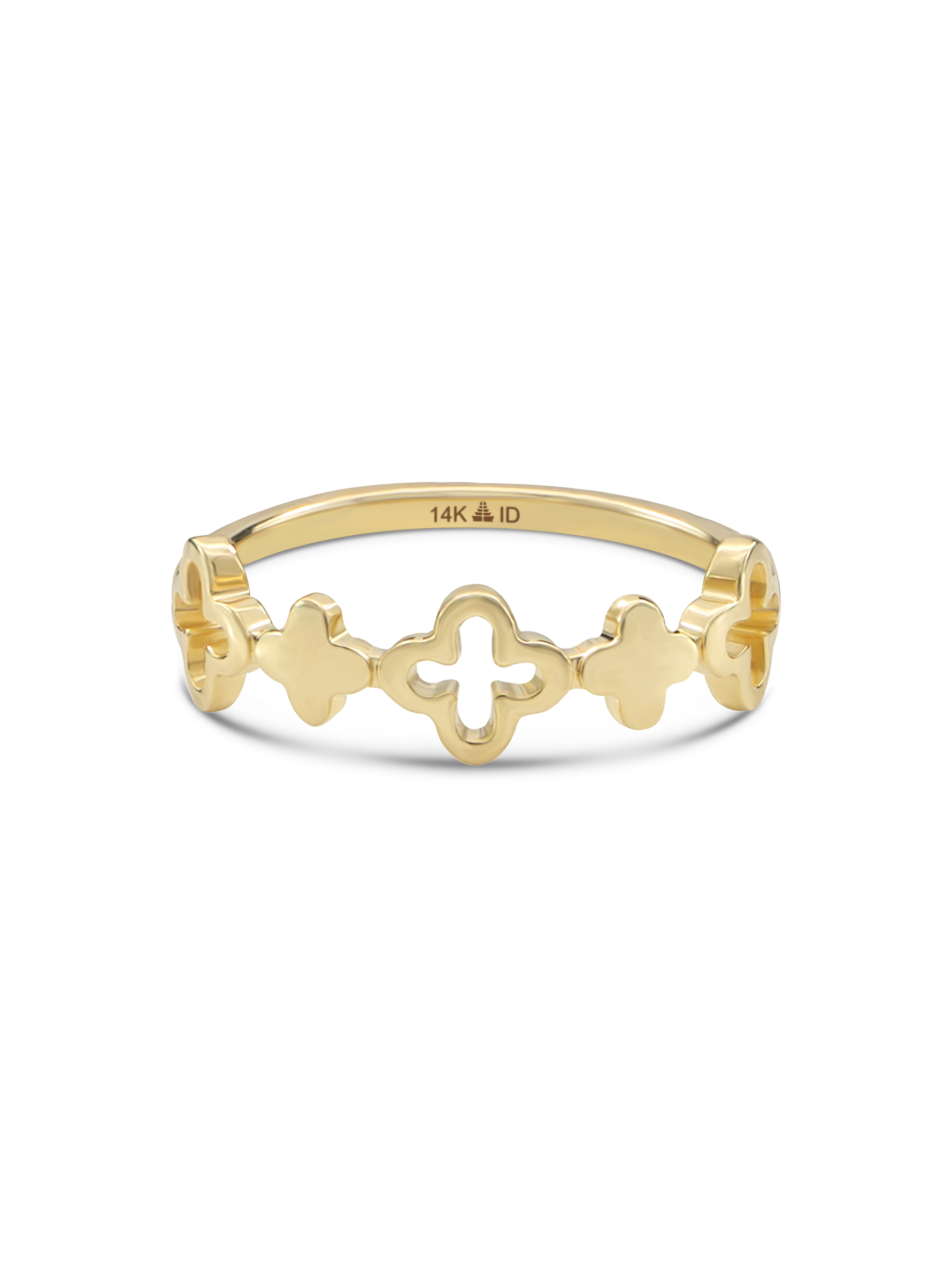 DEVATA clover ring crafted in solid 14K yellow gold.